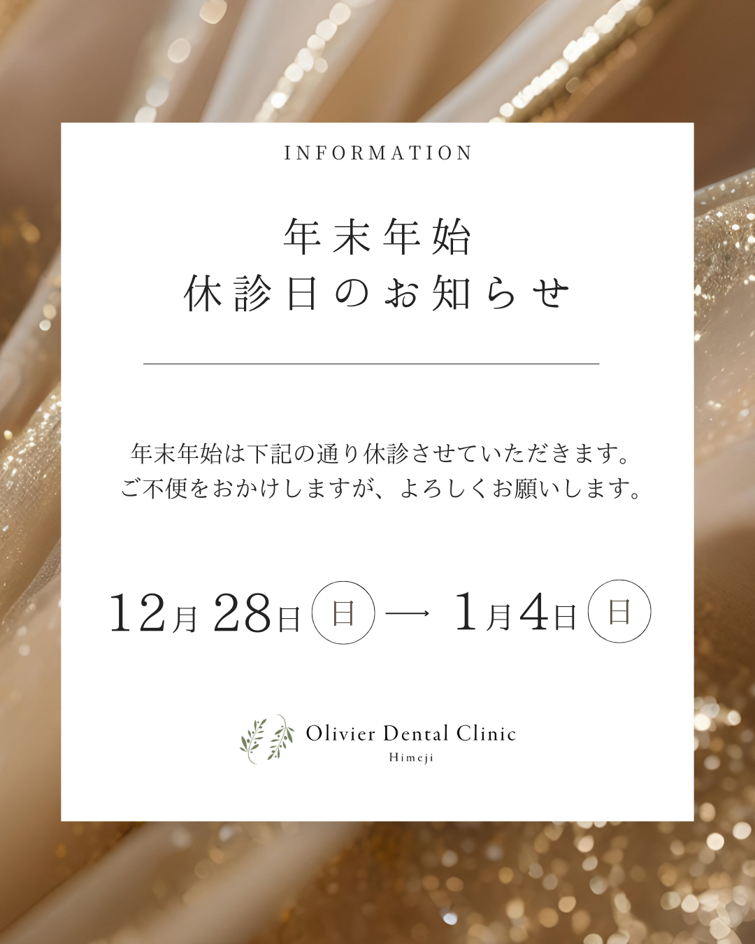 年末年始のお知らせ|姫路市今宿の歯医者「Olivier dental clinic」